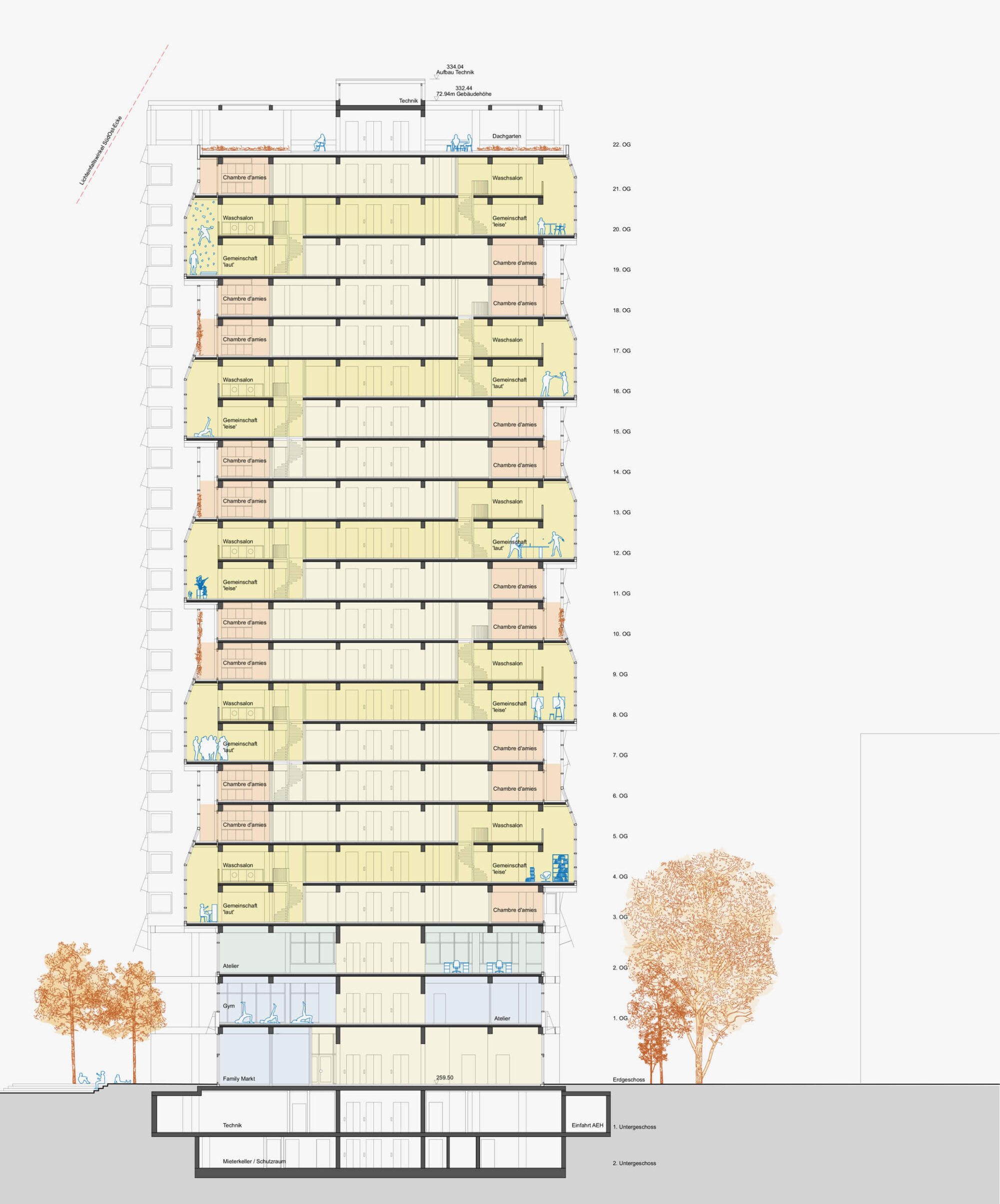 Programm: 96 Wohnungen, 18 Studios, Ateliers, Gemeinschaftsräume und Gewerbeflächen
