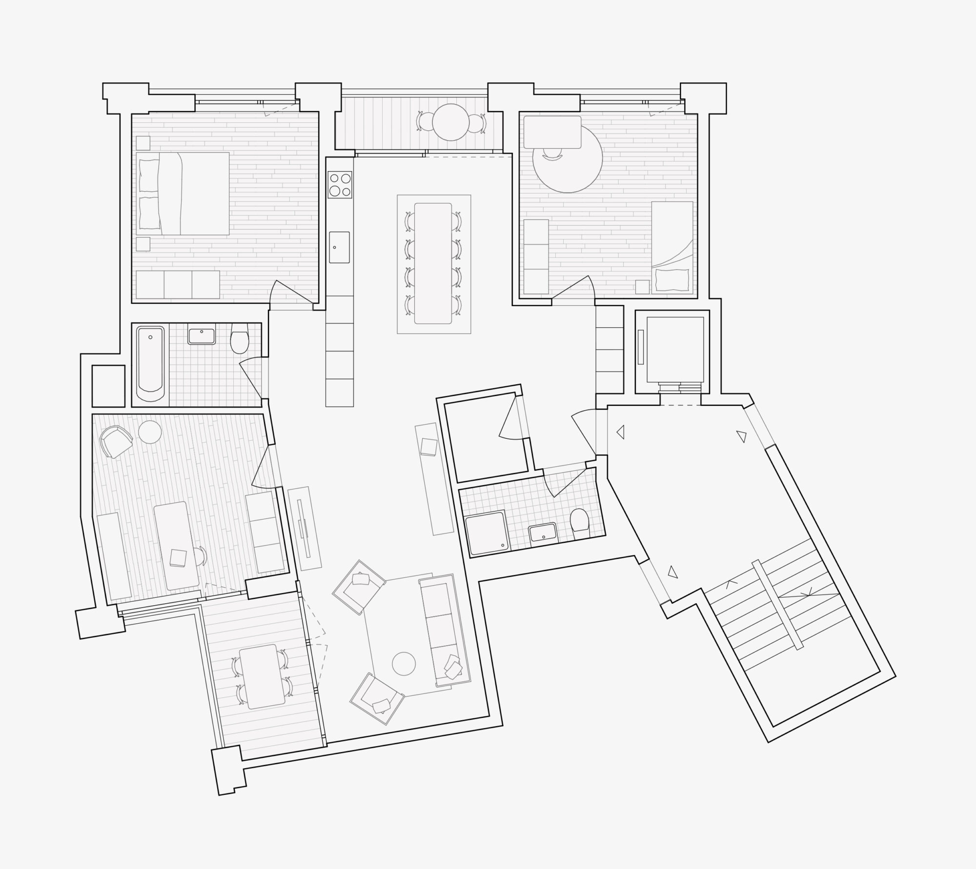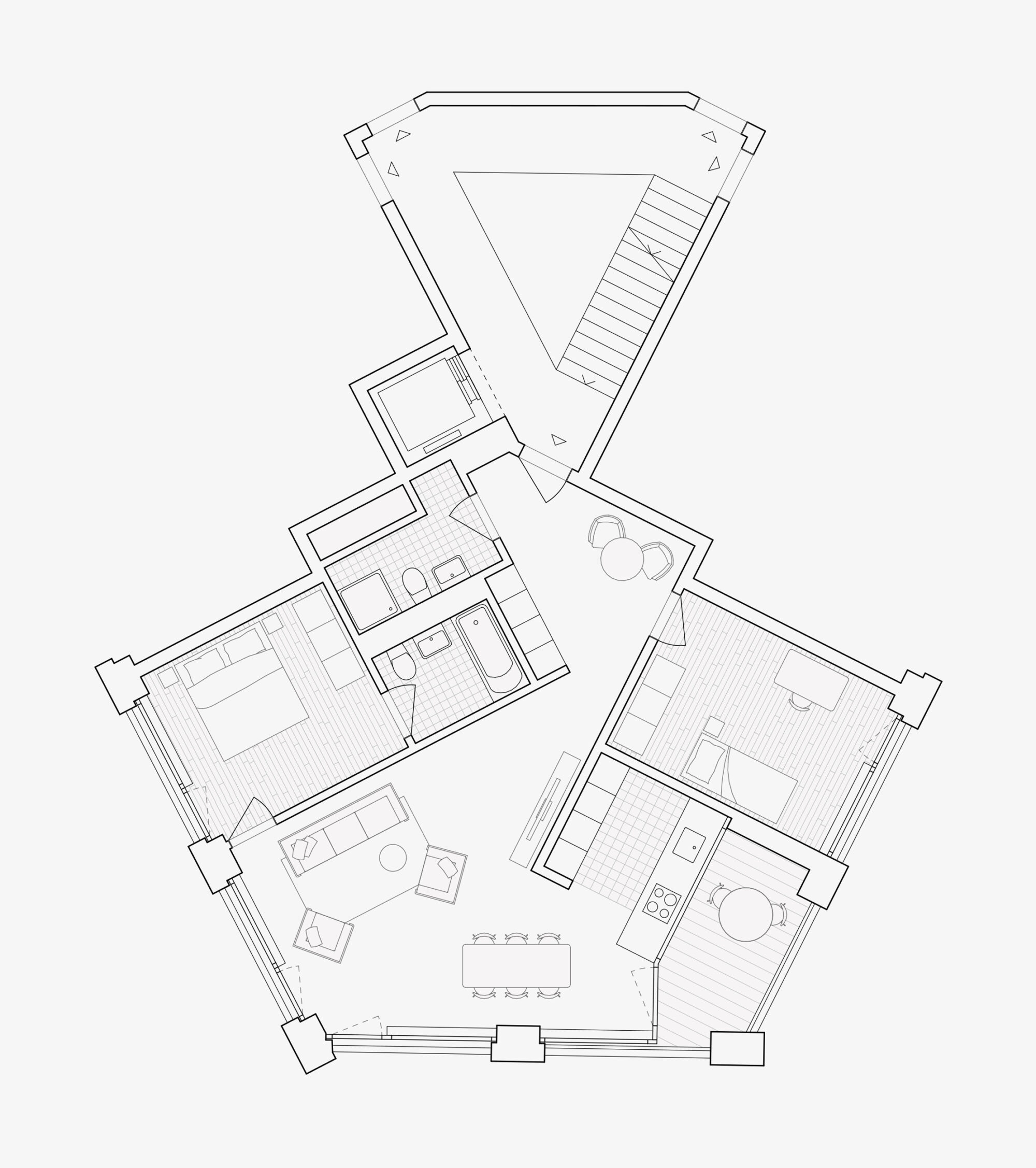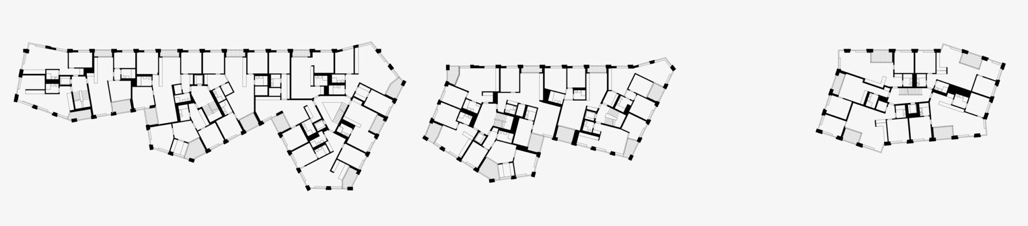 Die Baufelder haben aber noch eine zweite Vorderseite, die zur Zollstrasse. Während der Gleisraum vom grossen Massstab geprägt ist, gehört die Strassenseite in die kleinteilige, engmaschige Blockrand-Stadt des 19. Jahrhunderts. Hier gelten für bauliche Interventionen strenge Regeln, während auf der Seite zum Gleisfeld hin ein grösseres Mass an Autonomie möglich ist. An diesem städtischen Ort ist eine robuste Architektur gefragt. Deshalb werden die neuen Häuser von stämmigen Pfeilern aus Klinker-Mauerwerk gefasst und getragen. Die geschlossenen Wandfelder sind in Elementbauweise konzipiert. Auf diese Weise werden permanente und unterbrochene Elemente in der Fassade klar unterschieden und artikuliert.