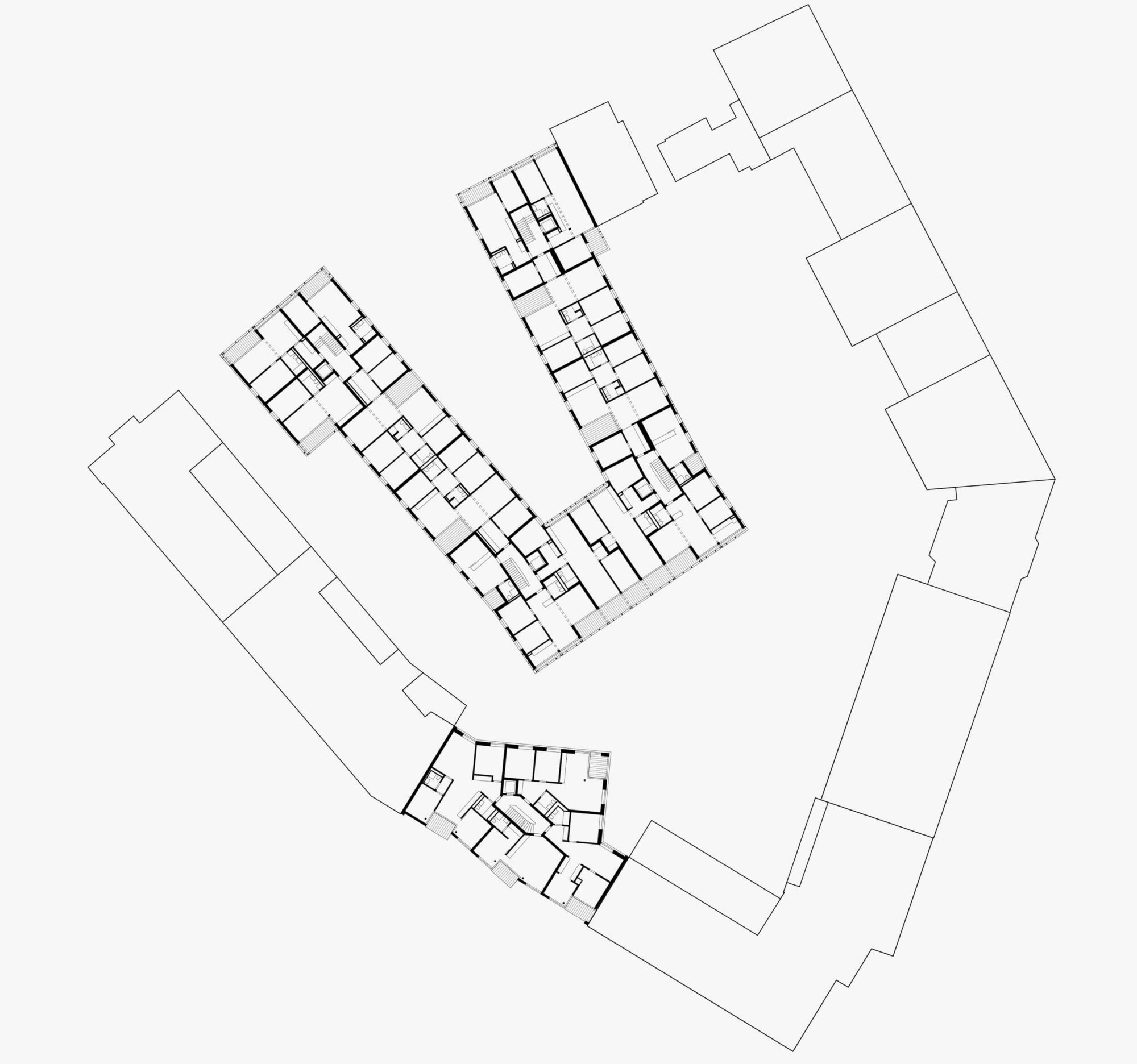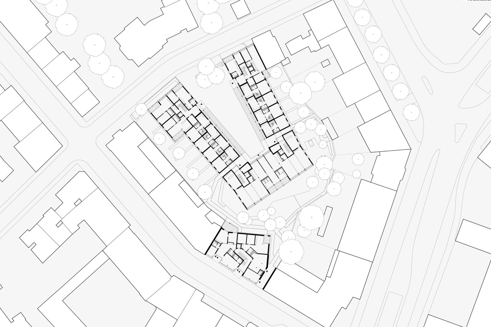 Die beiden Strassen, die das Planungsareal begrenzen, gewinnen aus ihrer Verschiedenheit eine sehr spezifische Identität. Die Hebelstrasse ist eine Verbindungsstrasse zur St. Johann-Vorstadt, die Maiengasse war dagegen zunächst nicht mehr als ein Pfad. Die Hebelstrasse bildet einen klar gefassten, formellen Strassenraum, die Maiengasse dagegen eine informell und niedrig bebaute Gasse. Darum wird mit dem Haus an der Hebelstrasse bloss eine Baulücke geschlossen, mit dem Hofgebäude dagegen das heterogene Gefüge der Maiengasse weitergebaut.